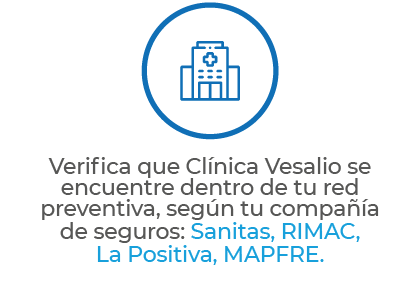 No dejes tu salud al azar y aprovecha los beneficios de contar con una EPS o seguro privado de salud. En el Centro Médico Vesalio nos enorgullece ofrecer atención especializada en chequeos médicos preventivos de las principales compañías de seguros del mercado peruano, como RIMAC, SANITAS, LA POSITIVA y MAPFRE.